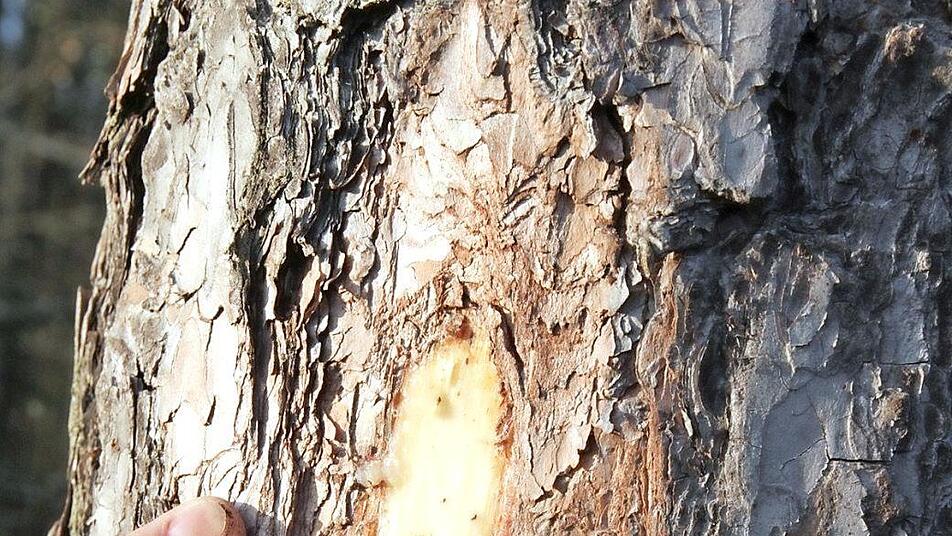 Begünstigt durch den heißen und trockenen Sommer 2015 wurden bayernweit auffällige Schäden zumeist an den Waldrändern von Kieferbeständen, beobachtet. "Augenscheinlich sind die extremen Witterungsbedingungen der Auslöser", so Förster Matthias Jessen.