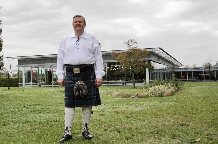 Nur manchmal kämpft er mit dem fränkischen Dialekt. Deutsch spricht er dagegen ausgezeichnet. Die fränkischen Biere und Bratwürste hat er mittlerweile so gerne, dass er sie bei jeder Dienstreise genauso vermisst wie seinen Schottenrock.
