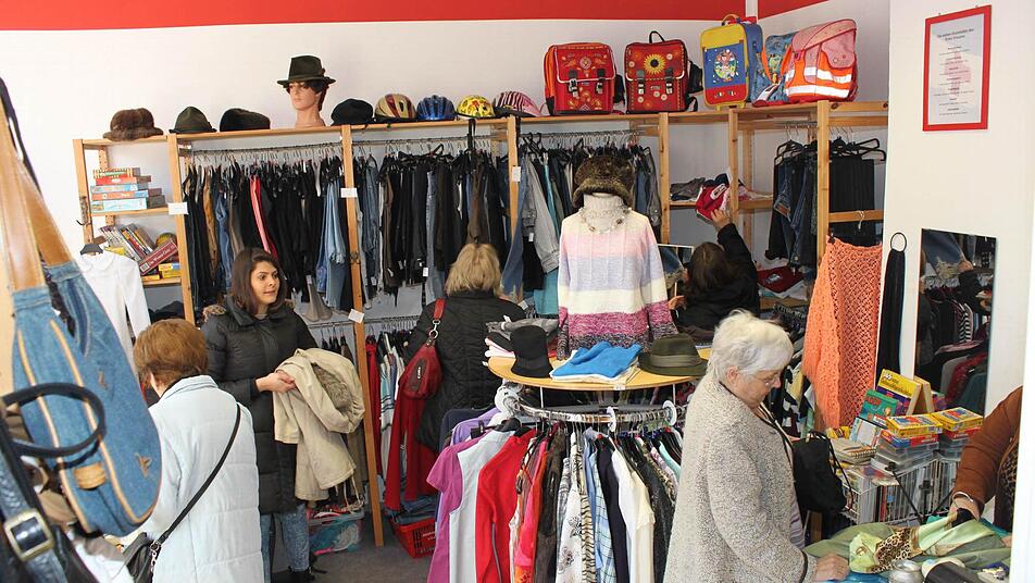 "Unser Engagement kommt aus dem Herzen", erklärt Andreas Rudolph, Leiter des Projekts "Kleiderladen", beim Aktionstag "Nachhaltigkeit für 150 Cent" des Baye rischen Roten Kreuzes (BRK). Alles kostet an diesem Tag 1,50 Euro, sodass sich viele Kunden eingefunden haben und in den Regalen stöbern.