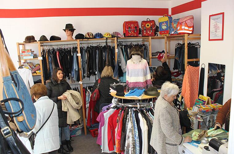 "150 deshalb, weil das Rote Kreuz 150 Jahre alt ist", informiert Rudolph. Das Angebot ist an jeden gerichtet, vor allem an Bedürftige. Im Laden sind verschiedene Sprachen zu hören, Frauen und Männer suchen nach Kleidung, Kinder spielen mit den Spielsachen. Christine ist eine Kundin, die Kleidung für einen Bekannten sucht, der diese in den Iran schickt: "Ich finde diesen Laden supertoll. Er hat ein sehr gutes Angebot.