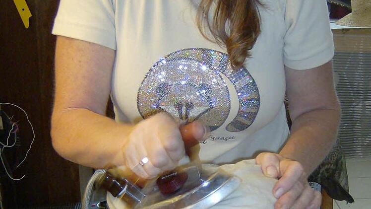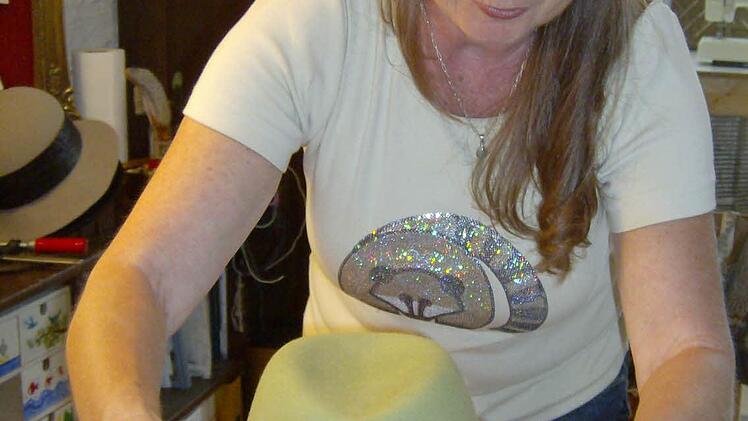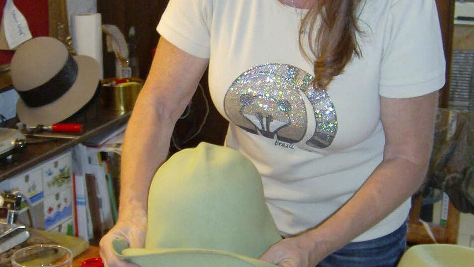 Eine der wenigen, die in Deutschland den Beruf der Putzmacherin ausübt, ist Stefanie Schneider de Weber aus Weißenohe. "Modistin", korrigiert sie lachend, während sie verschiedene Stoffarten begutachtet und die Unterschiede erklärt. Der Beruf des Hutmachers, der früher nur Männerhüte herstellte, erforderte viel Kraft, denn die Kaninchenhaare, die in den Filz eingearbeitet wurden, mussten gewalkt werden. Als Maschinen diese Aufgabe erledigten, ging das in die Hände der Industrie über. Nur wenige überlebten, um ihr Wissen zu vermitteln.