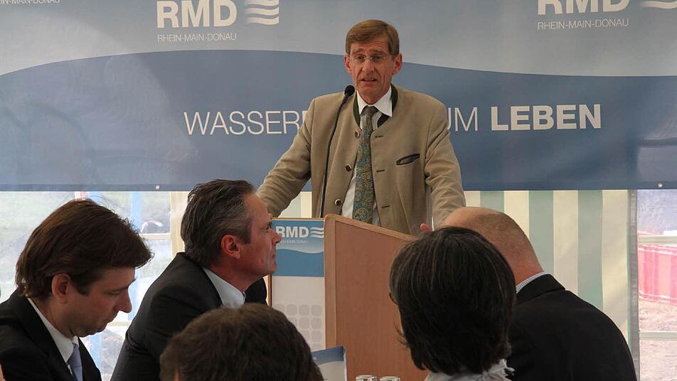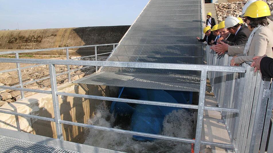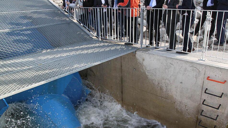 Die beiden hatten die Ehre, gemeinsam mit Wirtschaftsstaatssekretär Franz Josef Pschierer, dem Bundestagsabgeordneten Andreas Schwarz (SPD), den beiden Landtagsabgeordneten Michael Hofmann (CSU) und Thorsten Glauber (FW), der stellvertretenden Regierungspräsidentin Petra Platzgummer-Martin und den Vertreter von Eon und der RMD auf den "blauen Knopf" zum Ziehen des Oberwasserschützes zu