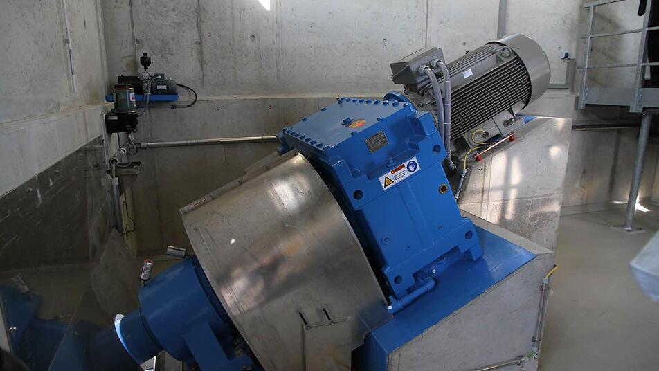 Mit der neuen Minianlage schlägt die RMD mehrere Fliegen mit einer Klappe. Denn durch die neue Schnecke strömen pro Sekunde 3,5 Kubikmeter Wasser aus fünf Metern Fallhöhe - Restwasser, dass gesetzlich aufgrund des flussabwärts gelegenen Kraftwerks bei Hirschaid aus gewässerökologischen Gründen in die Regnitz abzuleiten ist.