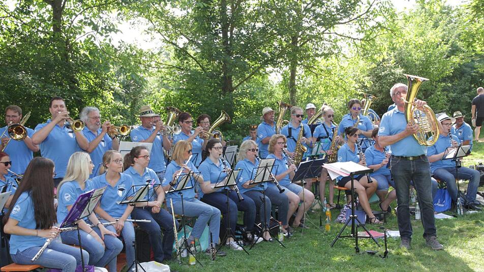 Der Spielmannszug von Jahn Forchheim bedankte sich mit einem Kellerkonzert in Stiebarlimbach für die Gastfreundschaft beim Pfingstzeltlager.