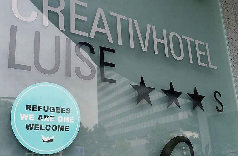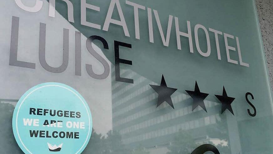 Es ist ein kleiner Aufkleber an der Ladentür, der eine einfache, aber starke Botschaft transportiert: "Refugees are welcome." Ein kleines Boot aus Papier dient Symbol.