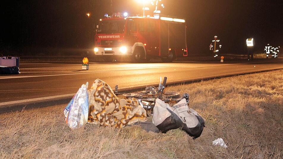 Um den Unfallhergang, bei dem der 41-Jährige, der mit einem Mountainbike unterwegs war, zu Tode kam, rekonstruieren zu können, wurde auf Anordnung der Staatsanwaltschaft Bamberg ejn Sachverständiger hinzugezogen. Jede Scherbe, jedes abgebrochene Teil wurde exakt vermessen und dokumentiert. "Noch sind die Ermittlungen nicht abgeschlossen", erklärte Polizeisprecher Peter Neder am Dienstag. Die Staatsstraße wurde für die Zeit der Unfallaufnahme von den Einsatzkräften der umliegenden Feuerwehren für rund drei Stunden komplett gesperrt. Kollegen leuchteten den Unfallort aus.