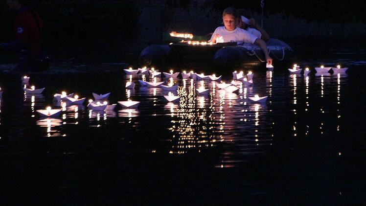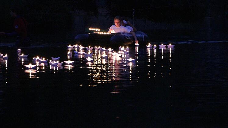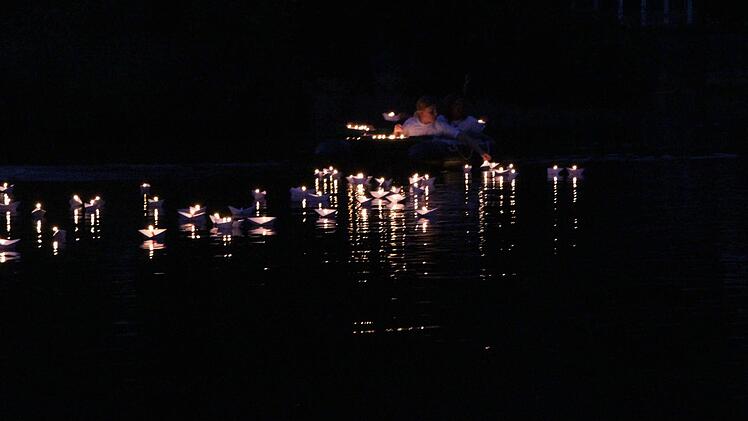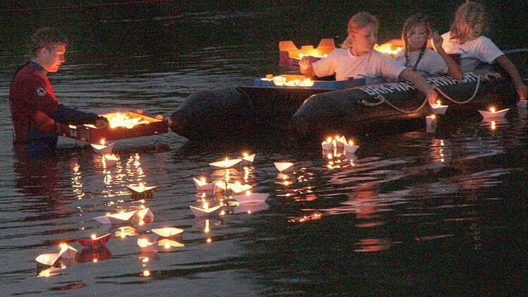 Einmal mehr hatten die rund 300 Kinder der Grundschule kleine leuchtend weiße Papierschiffchen gebastelt, die mit den brennenden Kerzen bestückt wurden. Bei Einbruch der Dunkelheit wurden sie vom Nachwuchs der örtlichen Wasserwacht unter den wachsamen Augen der Rettungsschwimmer von einem Schlauchboot aus zu Wasser gelassen.