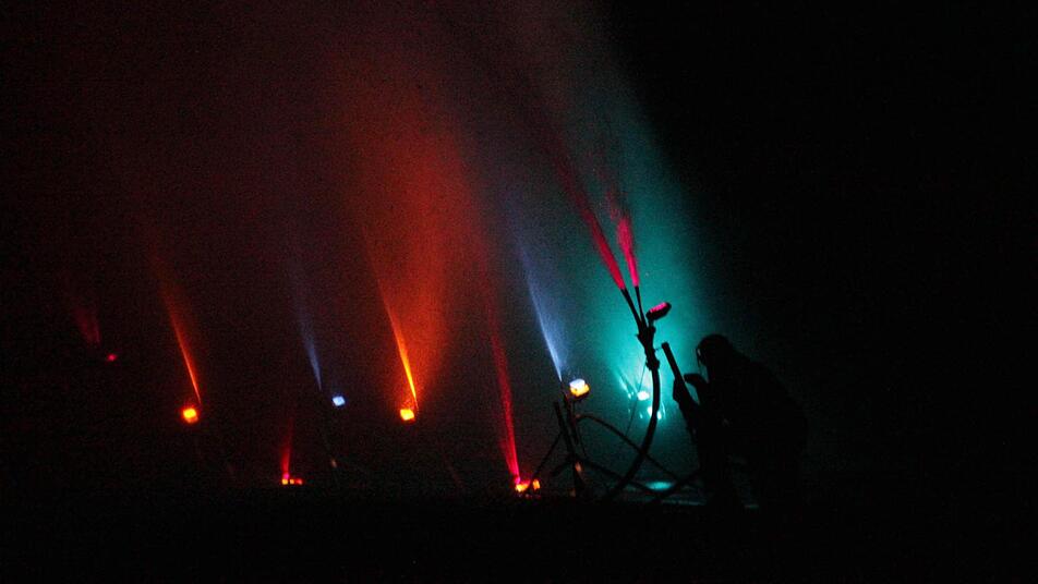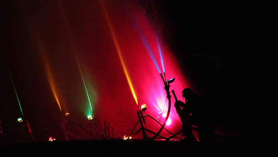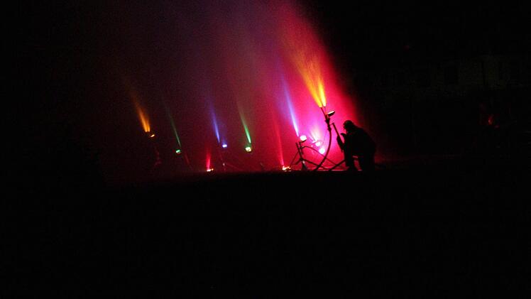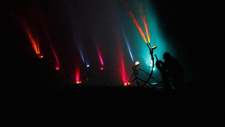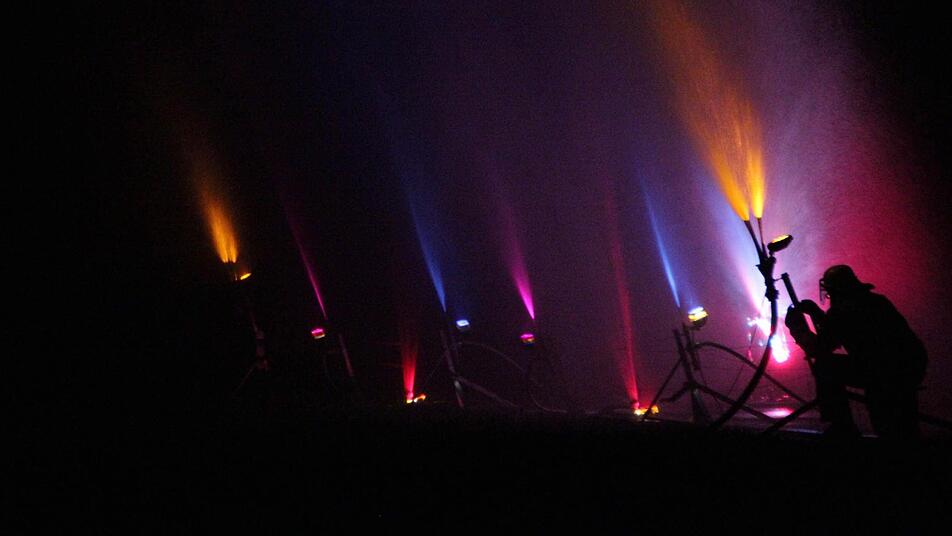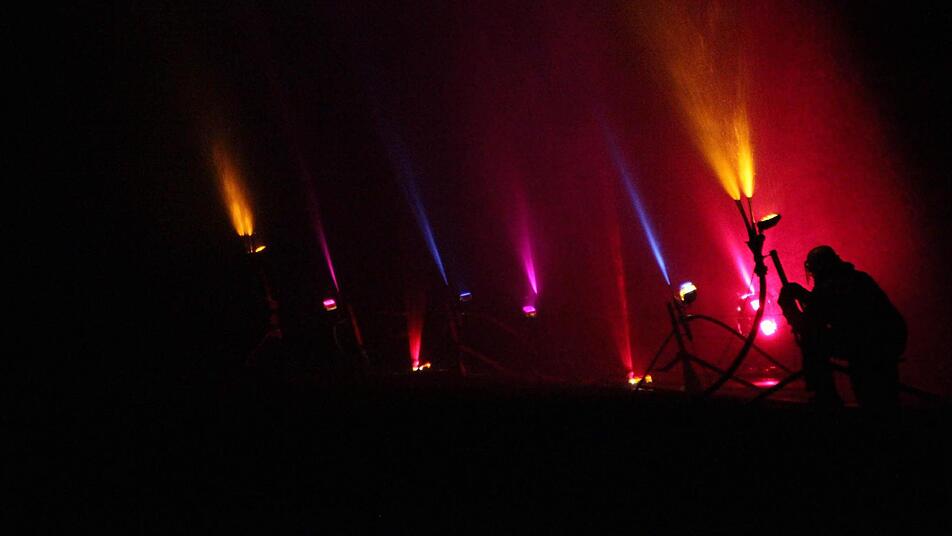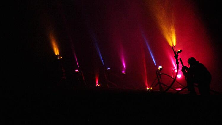 Aber auch die Freiwillige Feuerwehr hatte mit 20 Mitglieder ab dem frühen Vormittag alle Hände voll zu tun, um die 250 Meter Schlauchleitungen für die Wasser-Licht-Spiele zu verlegen und die Technik dafür aufzubauen, wie Feuerwehrmann Alexander Schmuck verriet. Zusammen mit den Spezialisten der "Kawala-Pyrotechnik" aus Gräfenberg wurde das Feuerwerk installiert. Dazwischen waren die Floriansjünger unterwegs, um einen Zimmerbrand in Ebermannstadt zu bekämpfen.