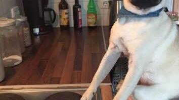 Wie das Mops-Männchen Mailo aus Elbersberg, der als Küchenhelfer für Frauchen Julia inzwischen unentbehrlich ist. Mailo ist einer von rund fünf Millionen Hunden, die laut einer Studie der Uni-Göttingen in Deutschland leben. Hunde sind übrigens nicht nur als Küchenhelfer gefragt - sie sind auch ein wichtiger Wirtschaftsfaktor: Rund 100 000 Arbeitsplätze sind mit Hunden verbunden. Der Arbeitsplatz von Mailo am Herd zählt jedoch nicht dazu - sonst würde ja der Hund in der Pfanne verrückt.