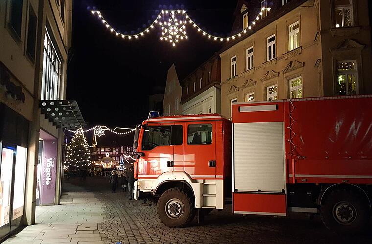Bereits am Dienstagabend versperrte ein Einsatzfahrzeug der Freiwilligen Feuerwehr Forchheim die Hauptstraße Richtung Weihnachtsmarkt. Zudem patrouillierte neben den Polizeistreifen auch weiteres Sicherheitspersonal mit der Aufschrift "Kontrolle" auf den Warnwesten, wie Konstantin Sauer, der die Szene per Handy festhielt, nachdenklich schildert: "Denen, die für unsere Sicherheit sorgen, muss man ein Danke sagen. Das Treiben am Weihnachtsmarkt lief relativ normal ab, vielleicht auch durch die größere und sichtbare Präsenz. Diese finde ich gut, weil sie Sicherheit signalisiert. Gleichzeitig finde ich es schade, dass es soweit kam, solche Maßnahmen überhaupt ergreifen zu müssen."