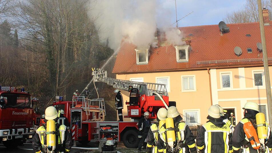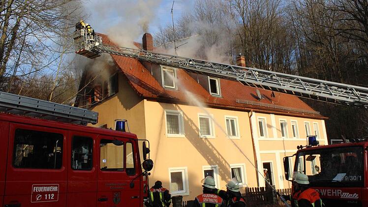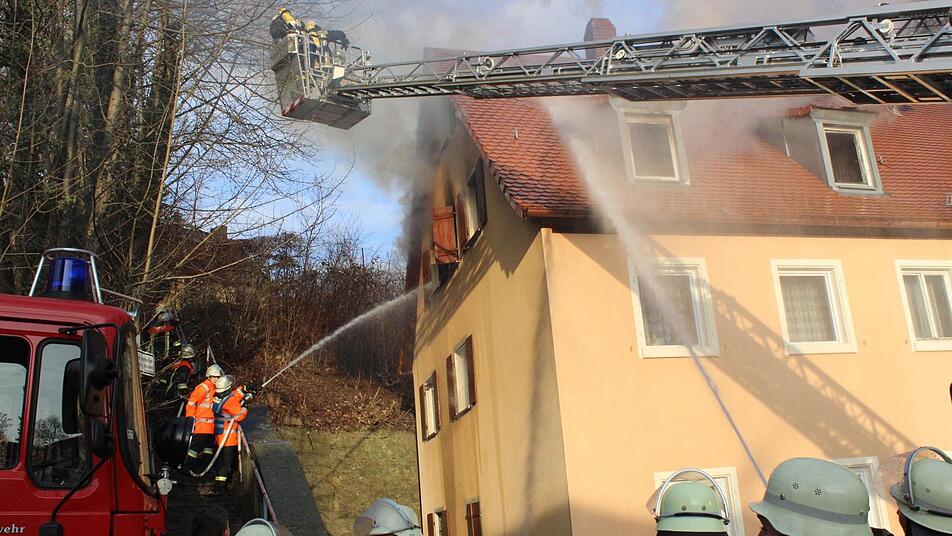 Ein Feuerwehrler ist am Dienstagnachmittag bei einem Wohnhausbrand in der Gräfenberger Bahnhofsstraße verletzt worden. Der Mann zog sich eine Rauchvergiftung zu. Befürchtungen, in dem ausgebrannten Dachgeschoss könnte ein vermisster Bewohner ums Leben gekommen sein, bewahrheiteten sich nicht. Brandermittler aus Bamberg konnten in dem ausgebrannten Gebäudeteil keine Spuren finden.