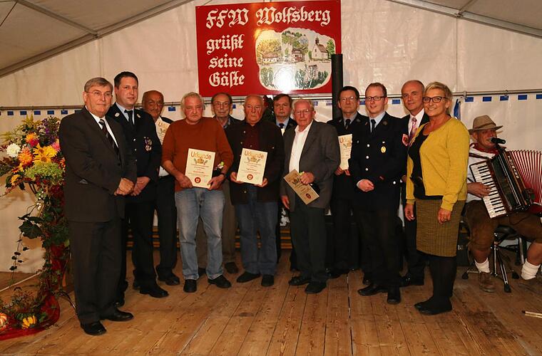 Feiern können auch im kleineren Rahmen würdig und reizvoll sein. Das bewiesen die Wolfsberger mit ihrer Wehr. Das neu hergerichtete Feuerwehrgerätehaus fiel zur 125-Jahr-Feier durch eine stimmungsvolle Beleuchtung auf. Schräg gegenüber im Ort fanden die Gäste im Festzelt einen gemütlichen Raum.