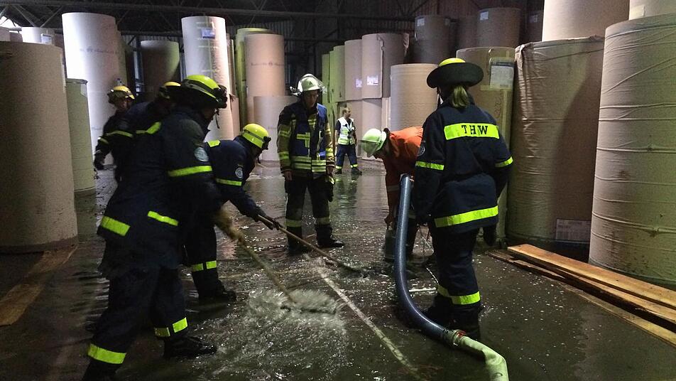 Der größte Einsatz ereignete sich bei der Firma Wellpappe in der Steinbühlstraße, wo Wasser auf das Betriebsgelände eingedrungen war und eine Halle unter Wasser setzte. Hier war neben der Feuerwehr Forchheim auch das Technische Hilfswerk (THW) Forchheim über drei Stunden tätig, um den Wasserschaden für die Firma so gering wie möglich zu halten.