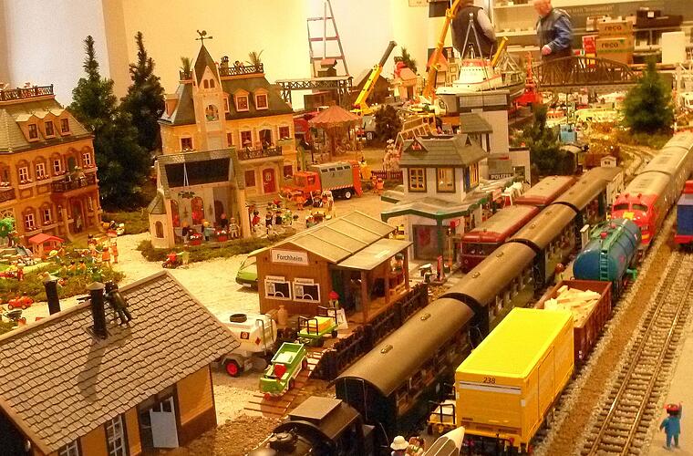 "Die Eisenbahn-Ausstellung in der Kaiserpfalz gehört seit vielen Jahren zur Advents- und Weihnachtszeit wie Weihnachtsengel und Adventskalender: Die Züge der Modellbaufreunde Forchheim e. V. schnauben im Erdgeschoss durch eine wunderschöne detailreiche Landschaft mit Gebäuden, Figuren und Szenerien: Zu sehen ist die fünf Meter lange Fleischmann H0-Anlage, eine Fleischmann Spur N-Anlage und eine zehn Meter Gartenbahnanlage mit Bahnbetriebswerk. Drei Spieltische stehen für Kinder zum Selberfahren bereit", so die Stadt.