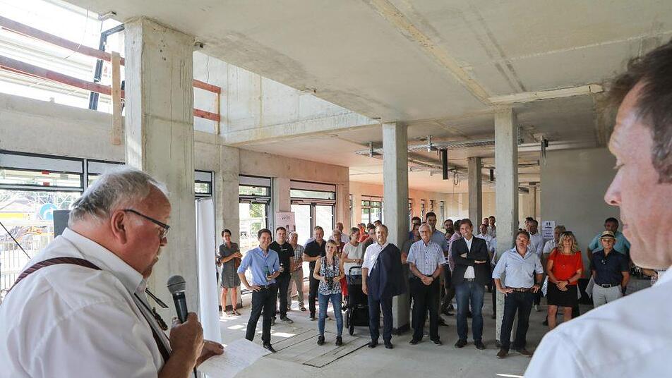 Den traditionellen Richtspruch sprach Stefan Meier von der Baufirma Fallert & Schmidt. Thomas Siebenhaar dankte allen Handwerkern, Bauleitern und Planern, die "aufrichtig, ehrlich und zuverlässlig und mit handwerklichem Anspruch" an dem Projekt arbeiteten - diese Tugenden seien gerade in "unseren verrückten Bauzeiten" wichtig.