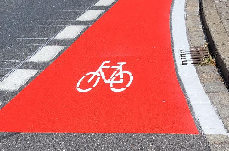 In Forchheim wurde einer weiterer "roter Teppich" errichtet, der für mehr Sicherheit für Radfahrende sorgen soll.