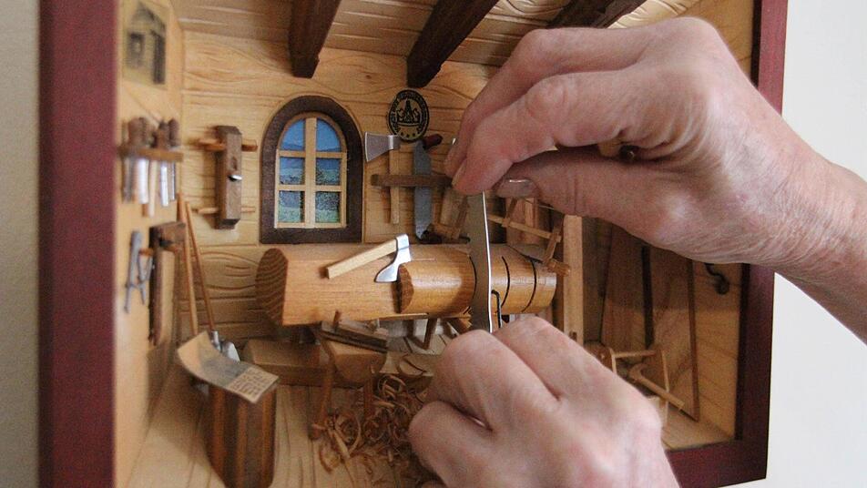 Zur Gedächtnis-Schulung des gelernten Zimmermannes hat seine Frau auch das Bilderbuch "Unser Werkzeug" angeschafft. Da sollte Oskar nicht nur die Werkzeuge benennen, sondern auch erklären, wozu sie gebraucht werden. Oskar hat das offenbar gefallen. So sehr, dass er von dem dreidimensionalen Wandbild, das eine Zimmerer-Werkstatt zeigt und ihn an seinen früheren Beruf erinnerte, die Säge wegnahm. "Die hab' ich überall gesucht", erinnert sich Eva. "Gefunden hab' ich sie in einer seiner Hosentaschen", lacht die Frau, die sich trotz des schweren Schicksals nie unterkriegen ließ.
