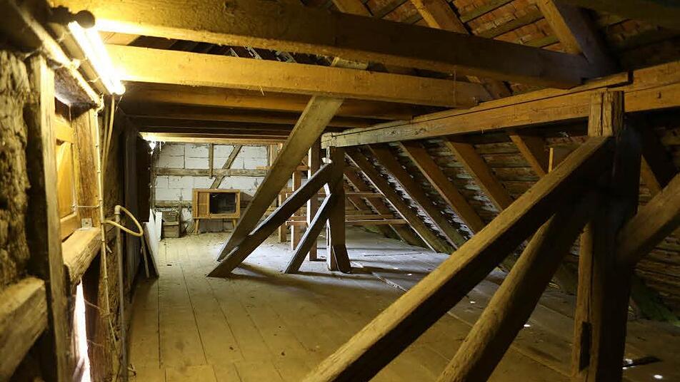 "Ich hatte schon einen Interessenten, der hat gesagt, seine Schwiegermutter würde das Schüren übernehmen", erzählt Bayer und kann ein leichtes Schmunzeln nicht unterdrücken. Die Substanz sei freilich hervorragend. Dach und Fachwerk stabil, die Sandstein-Fassade sogar fachmännisch in den 90er Jahren saniert worden. Unters Dachjuché gelangt man über ein auffallend versiert geschnitztes Treppengeländer. Dort auf dem Speicher lagern noch ein paar Akten. Verstaubte Verwaltungspapiere aus alten Zeiten, in denen der Förster noch in seinem Revier leben durfte. Aus der Traum - seit der Forstreform.