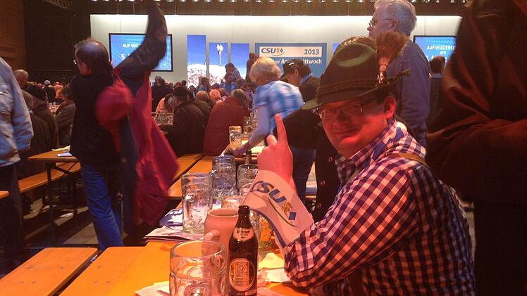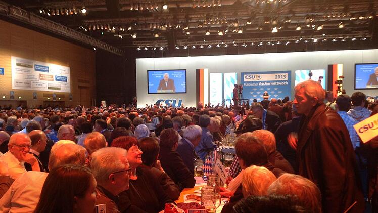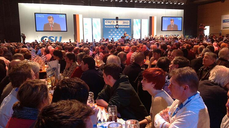 In der Halle wird zwar nicht gepafft, aber qualmen tut es trotzdem gewaltig. "Direkt an der Rednerbühne sind es locker 45 Grad", sagt eine Kellnerin. Ganz hinten im Saal, dort wo die fränkischen CSU-Freunde und Mathilde Hartmann sitzen, ist es in dieser Hinsicht etwas angenehmer. Aber an den Lippen hängen, das schaffen von dort nur Argusaugen. Distanzgründe und so. Der Vorteil: In der Pause ist der Pilger viel schneller bei den herrlichen Brezn. Und ja, auch beim Bier.