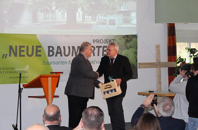 Wie wichtig der Wald und ein Umdenken in der Bepflanzung sind, zeigte auch der Vortrag von Olaf Schmidt, dem Präsidenten der Bayerischen Landesanstalt für Wald und Forstwirtschaft (LWF), auf. Er zeigte in einer Statistik, dass sich die Temperaturen Klima in Bayern seit 1881 um 1,5 Grad Celsius erhöht hätten. Der Niederschlag wird weniger, der Witterungsverlauf extremer und auch die Länge der Vegetationsperiode ändert sich. Schmidt trug vor, dass die Kohlenstoffbindung des Waldes wichtig für den Klimaschutz sei, der Wald eine Schutzfunktion bei Hochwasser, Steinschlag oder Lawinen habe und eine wichtige Oase bei Hitze sei.