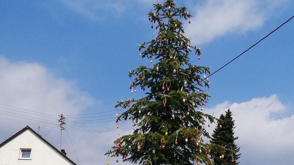 In Morschreuth ist erstmals ein Osterbaum geschmückt worden. Eigentlich ist es die Weihnachtstanne, aber einen (Oster-) Brunnen gibt es nun mal nicht.