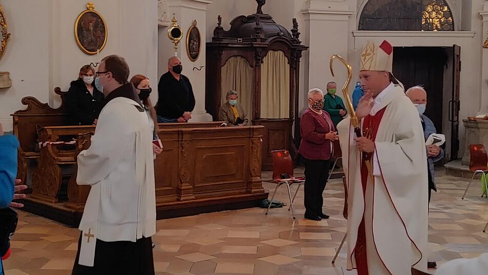 Am Dreifaltigkeitssonntag wird in der Basilika Gößweinstein das Patronatsfest gefeiert. Mehr als 20 Wallfahrten mit mehr als 3000 Menschen kommen normalerweise an diesem Wochenende in den größten Dreifaltigkeitswallfahrtsort Deutschlands. Doch in Zeiten der Corona-Pandemie ist auch am Gnadenort zur Heiligsten Dreifaltigkeit in Gößweinstein vieles anders. Auch am Patronatsfest wird von den Sicherheitsvorschriften keine Ausnahme gemacht. Lediglich 56 Gläubige statt 500 können in der Basilika mitfeiern. Wegen Regens ist der Aufenthalt um die Basilika herum sehr unangenehm. Trotzdem harren einige wenige mit Abstand voneinander vor dem Portal aus. Vor Beginn des Pontifikalgottesdienstes gibt Mesner Reinhold Hutzler die corona-bedingten Verhaltensregeln bekannt. Mit Minimalbesetzung an liturgischem Dienst zieht der Bamberger Weihbischof Herwig Gössl in die Basilika ein. Die Ständer für die Wallfahrtsbilder bleiben in diesem Jahr leer - ebenso die Gastwirtschaften und Straßen von Gößweinstein. In seiner Begrüßung verweist Pfarrer Pater Ludwig Mazur (OFM) darauf hin, dass die Corona-Pandemie die Welt in einem nicht vorstellbaren Maß verändert habe. Die Fantasie des grenzenlos Machbaren sei als hohl entlarvt worden. Das "Miteinander und Füreinander" ist auch der Leitgedanke von Weihbischof Herwig Gössl. Er spricht die anwesenden Christen an, die für viele, die heute nicht da sein könnten, beten und singen würden. Er spricht aber auch die kleinen Wallfahrtsgruppen von zwei, drei Personen an, die er auf seiner Fahrt nach Gößweinstein gesehen habe. In seiner Predigt geht Weihbischof Gössl auf das Wesen der Dreifaltigkeit ein. "Unser Gott, so sagt die Lehre von der göttlichen Dreifaltigkeit, ist in sich Beziehung. Eine Beziehung mit überströmender Liebe. Gott hat die Welt so sehr geliebt, dass er seinen einzigen Sohn hingab, damit jeder, der an ihn glaubt, nicht verloren geht, sondern das ewige Leben hat." Auch in diesen Tagen sei die Feier der Sakramente kein Luxus, auch wenn die Sicherheit der Mitfeiernden gewährleistet sein müsse. Auch der Religionsunterricht dürfe nicht auf Dauer ausfallen, ebenso wie die Treffen zur Kommunion- oder Firmkatechese. Schließlich gelte es auch, die materielle und seelische Not zu lindern. Hierbei denke er gerade an die älteren und kranken Menschen, denen jede persönliche Zuwendung genommen sei. "Diese unsere Welt braucht Gott, der in sich überströmende Liebe ist", zeigte sich Weihbischof Gössl überzeugt. Am Ende des Gottesdienstes dankte er der feiernden Gemeinde für ihre Treue, Zuverlässigkeit und Geduld. Mesner Reinhold Hutzler trug die Lesungen aus dem Buch Exodus und dem zweiten Brief des Apostels Paulus vor. Organist und Kantor Georg Schäffner gestaltete den Pontifikalgottesdienst musikalisch. Nicht zuletzt sorgten Pfarrgemeinderatsvorsitzende Kathrin Heckel und die Pfarrgemeinderats- und Kirchenverwaltungsmitglieder Steffi Bezold, Sabine Neuner und Josef Geck für das Einhalten der Sicherheitsvorschriften. "Die Teilnahme am Gottesdienst muss mit einem guten Gefühl erfolgen können", sagte Pater Ludwig Mazur.