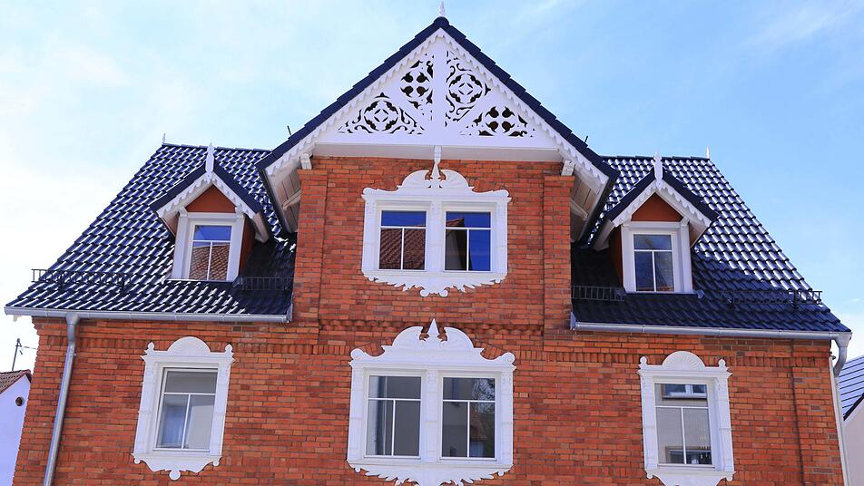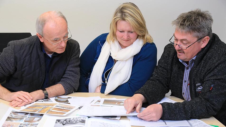 Die neuen Eigentümer des Dorfladens haben auf der gegenüberliegenden Straßenseite das Büro ihres Unternehmens, ein Baugeschäft. Im Beisein von Bürgermeister Grüner gehen sie auf die Geschichte des denkmalgeschützten Hauses mit dem Laden ein. Viele Bilder und alte Dokumente belegen die bewegte Geschichte des Gebäudes im Zentrum des Dorfes. Um 1880 errichtete ein Conrad Brendel den zweigeschossigen Backsteinbau, bereits damals mit einem Dorfladen. Die dekorative Backsteinarchitektur, ein Schiefergiebel und vor allem die aus Lärche geschnitzten Holzverzierungen um die Fenster waren wesentliche Gründe, das Haus unter Denkmalschutz zu stellen, wie Bianca Häfner erläutert. Auf der Rückseite der Holzteile fand man handschriftlich die Namen der damals Mitwirkenden. Die Schreinerei Stephan Kugler hat jetzt diese Verzierungen in Kleinarbeit abgenommen, zerlegt, restauriert, neu gestrichen und wieder befestigt. Jürgen Häfner deutet vor Ort auch auf die Backsteine in Formaten, wie sie heute nicht mehr zu finden sind. In mühevoller Arbeit wurden 14 Tage lang die Steine ausgetauscht, die dem Zahn der Zeit zum Opfer gefallen sind. Nur bei sehr genauem Hinschauen sind die tadellosen Reparaturen teilweise erkennbar. Man merkt den neuen Besitzern an, dass sie auf das neue Schmuckkästchen im Dorfzentrum stolz sind. Auf der Seite der Teichstraße grenzt der Dorfladen eng an die Kreisstraße. Die Vorbereitungen in der Gemeinde sind getroffen, den Gehsteig so zu verbreitern, dass mindestens ein Kinderwagen mühelos auf dem Weg zum Laden sicher passieren kann. Bei den Reparaturen holte die neuen Eigentümer auch die Geschichte wieder ein. Aus Aufzeichnungen fanden sie heraus, dass der Erbauer der Urgroßvater der neuen Besitzer war. Erbteilungen hatten die Spuren etwas verwischt. Jetzt schließt sich hier ein weiterer Kreis.