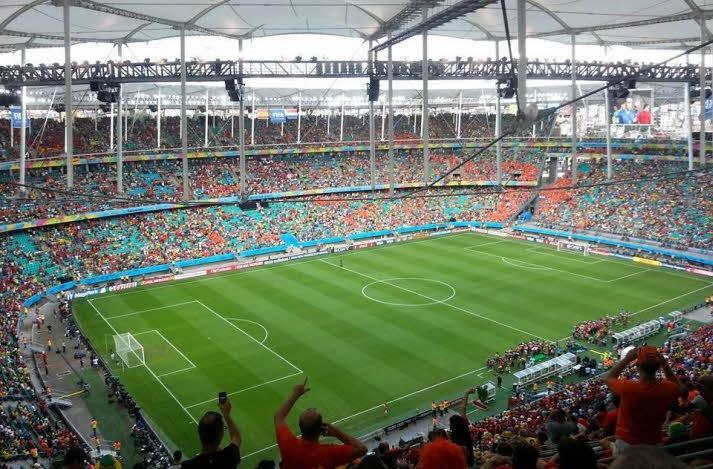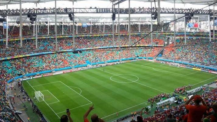 Salvador da Bahia, 14.06.2014:Mein erstes WM-Spiel 2014, live im Stadion. Im schwarz-roten DFB-Auswärtstrikot machte ich mich auf zum Spiel Spanien gegen Holland. Die Suche nach einem Taxi in der Nähe war erfolglos. Also steuerte ich die nächste Haltestelle am Shopping Zentrum an, von wo aus Busse zum Stadion fahren sollten. Zufällig fiel mir auf dem Weg dorthin auf, wie drei perfekt verkleidete dänische Fans in ein Taxi stiegen. Wagemutig hielt ich das Taxi an, und war damit die vierte Person im Wagen. Noch 90 Minuten zum Anpfiff und ungefähr vier einhalb Kilometer zum Stadion Fonte Nova. Eigentlich genug Zeit.