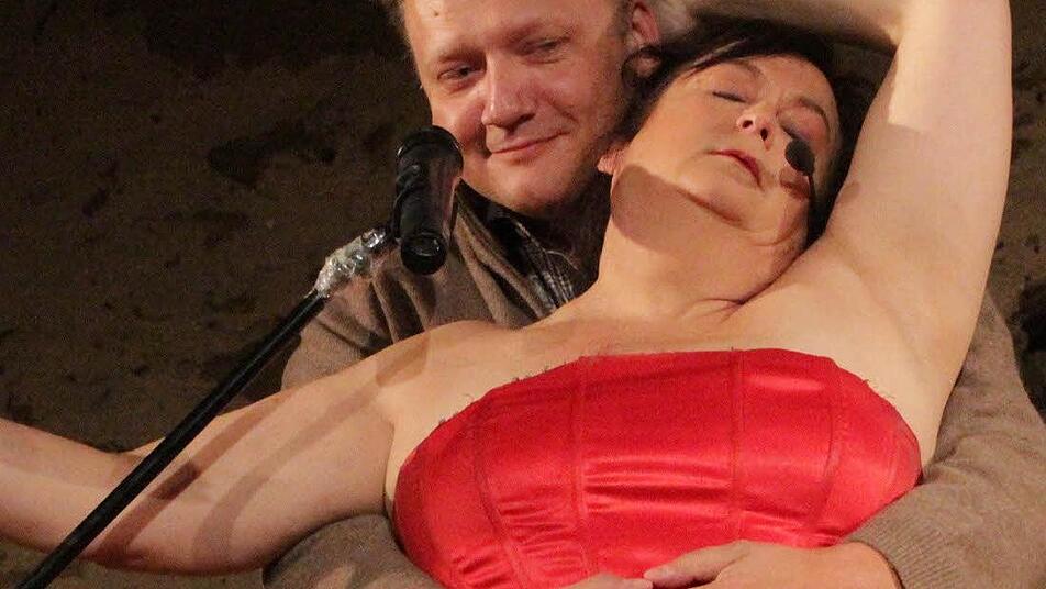 Lasziv räkelt sich Lizzy Aumeier auf der Bühne der Zehentscheune in Neunkirchen am Brand , wo sie mit einem "Best of" aus ihren Programmen "Aufbassd", "Boxenluder" und "Voll drauf" gastierte. Für ein paar Sekunden posiert die "Fehlpressung einer Barbiepuppe" nur für den Fotografen, ehe sie sich wieder dem Publikum zuwendet und gesteht: "I mog de gschdelldn Bilda ned."