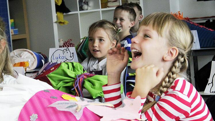 Dabei behilflich war Ele, der Stoff-Elefant, den Heike Jehle als Handpuppe benutzte. Zur Freude der Kinder. Schwer beeindruckt von den Bauchredner-Künsten der Lehrerin fragte ein Bub: "Kannst du auch rappen?"
