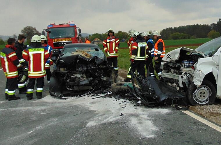 Zwei Autos sind am Donnerstag zwischen Forth-Frohnhof (Kreis Erlangen-Höchstadt) und Steinbach (Kreis Forchheim) frontal zusammengestoßen.