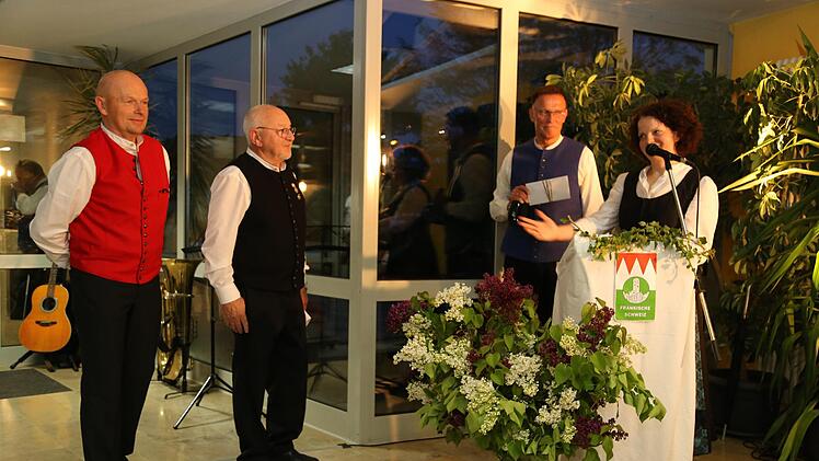 Dem FSV dankte Grüner für die vorbildliche Pflege der rund 500 Kilometer Wanderwege und der Pflege der Burgruine. Grüner hebt den wertvollen Beitrag zum Erhalt der ländlichen Kultur hervor und freut sich über die Sänger des FSV in Tracht.