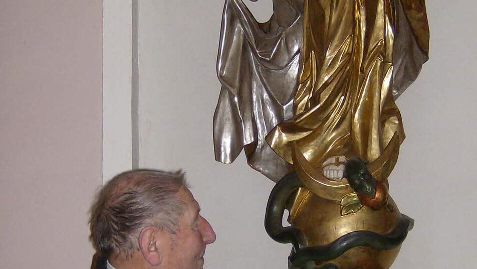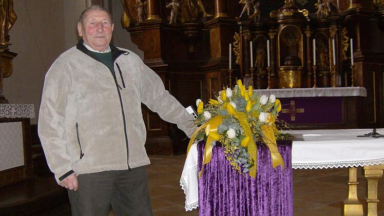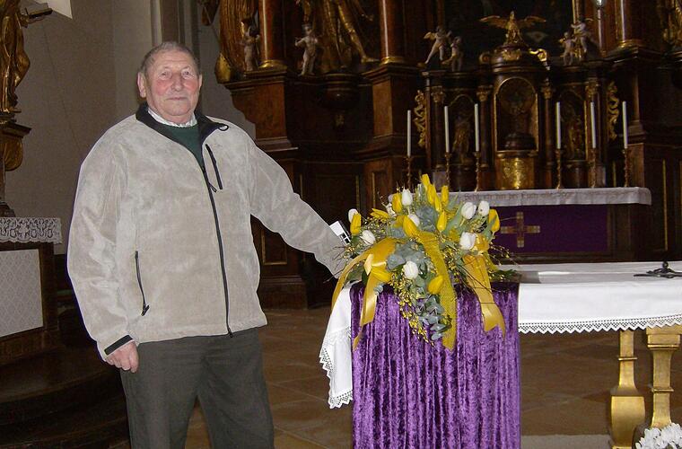 Als der Nachfolgemesner schwer erkrankte, war Hans Bayerlein wieder zur Stelle. Er dekorierte die Kirche, und trug die Madonna an den Altar.