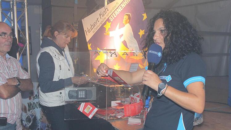 Bereits zu Beginn der Veranstaltung um 21 Uhr waren die Sitzplätze vergeben. Vor dem Zelt kamen jedoch immer noch weitere Menschen an. Moderatorin Irina Hanft war auch deshalb sehr angetan: "Das ist echt super, die tolle Stimmung hier und die vielen Gäste."