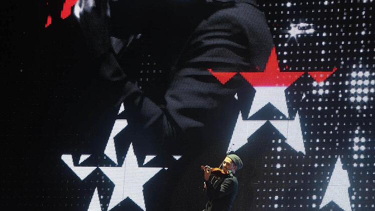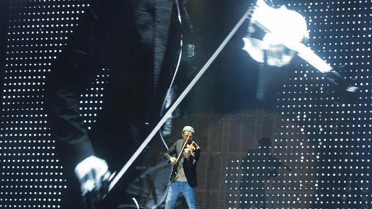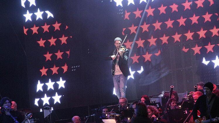 Drei Leinwände so groß wie ein Basketballfeld zeigen den Umriss der Erde; aus den Boxen hallt beschwörend "Also sprach Zarathustra" von Richard Strauss - 6500 Augenpaare sind erwartungsfroh auf die Bühne gerichtet: Wo bleibt er denn? Irgendwo ist seine Geige zu hören. Und dann geht David Garrett direkt durch die Zuschauer zur Bühne, zum Greifen nach mit seiner Stradivari. Kaum haben es die Fans realisiert, ist er auch schon ein paar Meter weiter - abgeschirmt von Security.