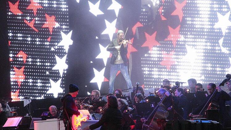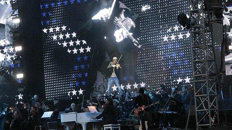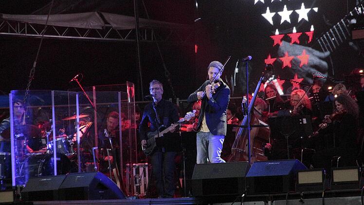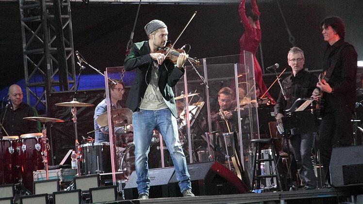 So begann am Freitagabend gegen 20.30 Uhr der Auftritt des blonden Star-Geigers auf dem Jahn-Gelände. Von den 7500 Stühlen, die bereit standen, blieben rund 1000 leer. Für die Veranstalterin Gabi Heyder war das angesichts des kühlen Wetters bei einem "klassisch hochpreisigen Konzert" trotzdem ein guter Besuch.