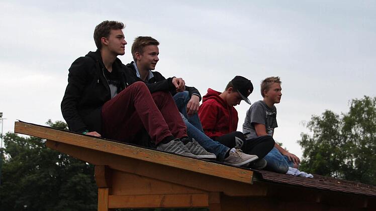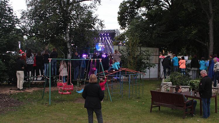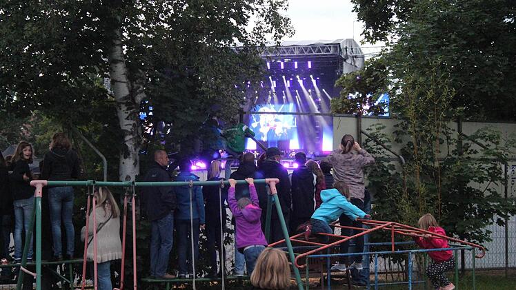 "Ich bin hierher gekommen, um zu schauen, ob es noch Karten gibt", erzählt Helga aus Himmelkron (Landkreis Kulmbach). "Dann habe ich aber gemerkt, dass man hier genauso gut hört, und wir sind geblieben." Und so genießt sie den Abend an der Seite ihrer Freunde Susanne und Stefan aus Pautzfeld mal auf der Schaukel am ATSV-Spielplatz, mal auf einer Bierbank stehend und durch ein großes Loch im Zaun auf die Bühne linsend - bis Garretts Geige verstummt.