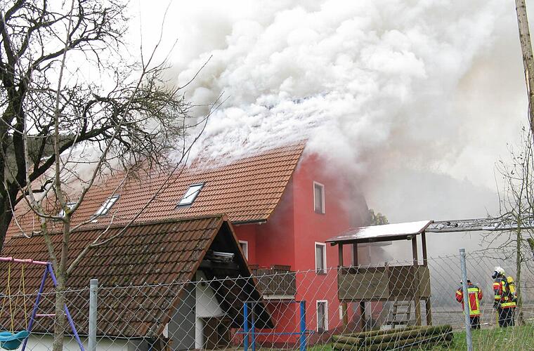 Kurz vor dem Vollbrand Das Feuer war nach ersten Erkenntnissen in einem rückwärtigen Anbau des Gebäudes ausgebrochen, in dem die Heizung untergebracht ist. In den etwa 20 Minuten bis zum Eintreffen der Löschtrupps hatten sich die Flammen bis unters Dach des Hauses ausgebreitet. "Der Dachstuhl war komplett verqualmt und kurz vor dem Durchzünden", schildert Windisch die Situation beim Eintreffen der Floriansjünger. "Flash over" nennt man das in der Fachsprache, wenn die Rauchentwicklung derart heiß wird, dass es zur Verpuffung und somit zum Vollbrand kommt. Dann wäre das Gebäude bis zum Kniestock abgebrannt.