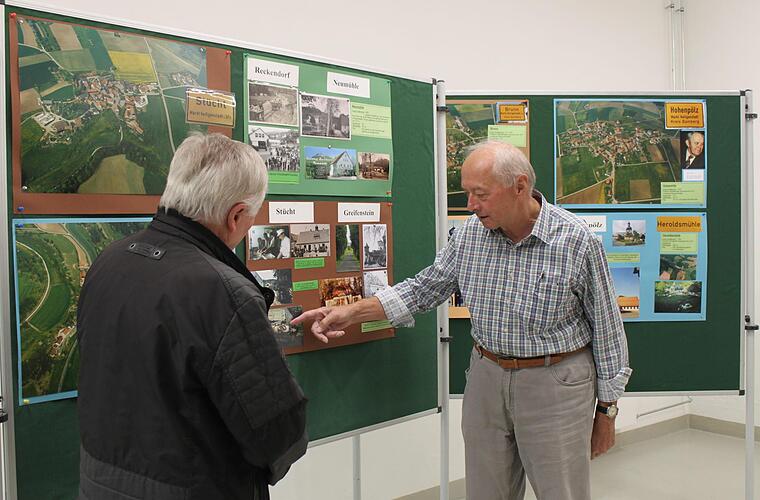 Danach wurde der alte Landkreis Forchheim aufgelöst. "Eigentlich sollten ja Heiligenstadt und Aufseß nach Bamberg, aber Bürgermeister Christoph Hertling aus Aufseß wollte mit Wüstenstein eine Großgemeinde bilden und im neuen Landkreis Forchheim bleiben", weiß Dorsch. Doch Wüstenstein schloss sich dem neuen Markt Wiesenttal an. Aufseß ging dann in den Landkreis Bayreuth. 1978 traten auch die restlichen Gemeinden der Marktgemeinde Heiligenstadt bei. Für jede dieser 24 Ortsteile erstellte Hans Dorsch Infoblätter, die im ehemaligen Feuerwehrhaus neben dem Rathaus ausgestellt werden. "Ich habe ja viele alte Bilder, Luftbilder und Zeitungsausschnitte", teilt Dorsch mit. Hier können sich die Bürger über die Gebietsreform informieren. "Da soll jetzt noch rein, was der jetzige Bürgermeister in seiner Amtszeit gemacht hat", meint Hans Dorsch und präsentiert schon mal stolz seine Tafeln zur Gebietsreform, die er mit viel Arbeit und Wissen erstellt hat.