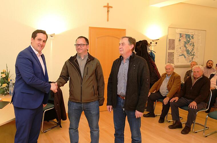 Bereits eingangs vereidigte Bürgermeister Kraft mit Christian Seitz und Martin Dorsch zwei neue Feldgeschworene. Kraft dankte Theodor Siebenhaar und Otmar Alt für ihren treuen Dienst seit 1983. Aus Altersgründen baten sie um Entlastung. Nach dem Gesetz bleiben sie aber ein Leben lang Geschworene. Siebenhaar war auch viele Jahre Ortsobmann. Diese Funktion übernimmt Andreas Geck, sein Stellvertreter ist künftig Reinhold Götz.