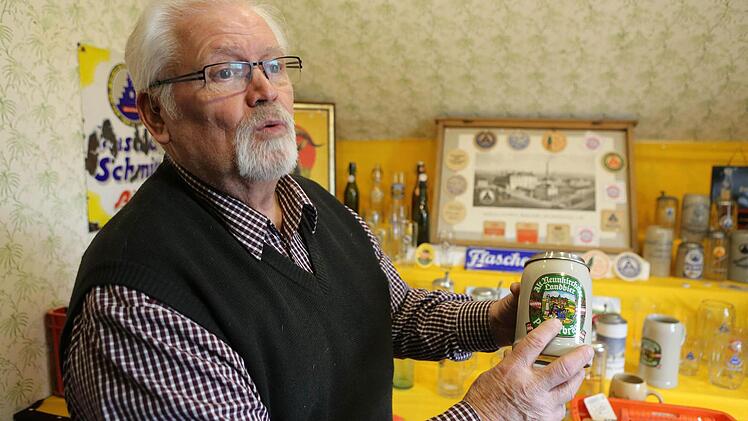 Auf manchen Gläsern stehen 0,4 Liter, auf anderen 0,5 Liter als Eichangabe.  Das hatte einen einfachen Grund, wie Herbert Roth weiß: "Das Pils war teurer als ein Helles oder ein Lagerbier. Damit die Bedienung immer den gleichen Preis verlangen konnte, wurde das Pils in einem 0,4-Liter-Glas verkauft." Dann zeigt Roth Raritäten der anderen ehemaligen Neunkirchner Brauereien wie Hebendanz und Hubmann. "Der Krug von Martin Hubmann ist ein seltener Krug. Und hier, das Bierfilz ist das einzige bekannte Bierfilz der Brauerei Hubmann", sagt der Museumsbetreuer, bevor er die älteste Bierflasche der Firma Hebendanz in die Hand nimmt und auf ein Bierglas in Stiefelform zeigt, eine seltene Ausgabe von der Brauerei Polster, deren Chef Johann Kohlmann hieß.