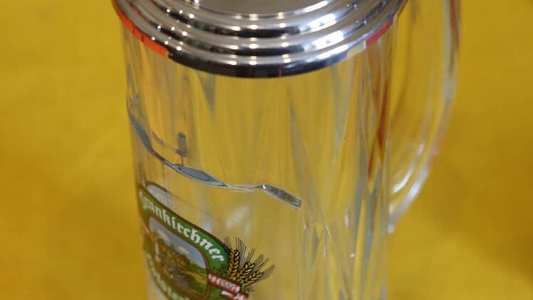 Dies war übrigens die einzige Brauerei in Neunkirchen, die Weißbier selbst gebraut hatte. Kurz vor ihrem Ende im Jahr 2003. Inzwischen ist nicht einmal mehr das Gebäude vorhanden. Doch Polster unterstützte auch die Vereine, wie die aufgemalten Bilder auf den Krügen und Gläsern zeigen. Dort sind Trachtler und die Kapelle abgebildet, neben einem Gedenkstein, der gesetzt wurde, wenn etwas gut ausging. Und sie bereiteten gerade den Sammlern mit ihren Jahreskrügen ein besonderes Bonbon. Sammler wie Guido Fees überließen den Ausstellungsmachern ihre Schmuckkrüge und Gläser.