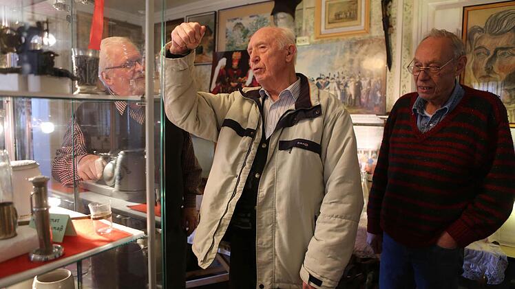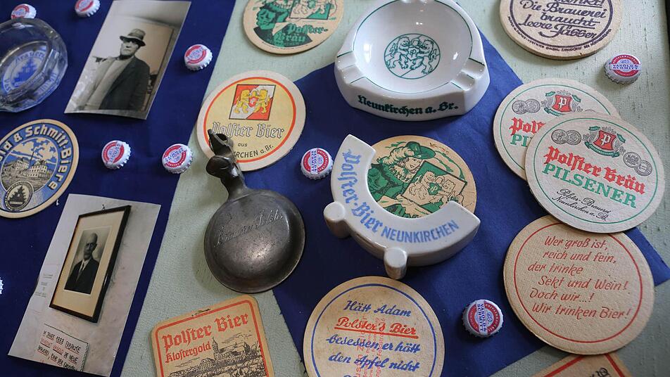 Das obere Brauhaus stand direkt am Brandbach, aus dem das Brauwasser bezogen wurde, erzählt er, während er durch die drei Ausstellungsräume führt. Dort sind Bierflaschen, Kronkorken, Bierfilzchen, Krüge und alte Brauschilder fein säuberlich auf Tischen und hinter Vitrinen neben Kuriositäten wie einem antiken Bierwärmer oder dem Filter für Trübbier drapiert. Jeder dieser Sammlergegenstände erzählt eine andere Geschichte der fünf Brauereien, die es in Neunkirchen einst gab.  "Hier sind schon die neuen Reinheitsgebotskapseln verwendet worden", erklärt der zweite Vorstand des Heimat- und Touristenvereins, Alfred Sander, zu einem Bierflaschenverschluss der Brauerei Polster.