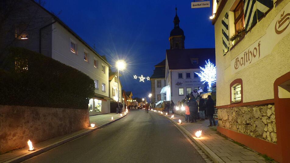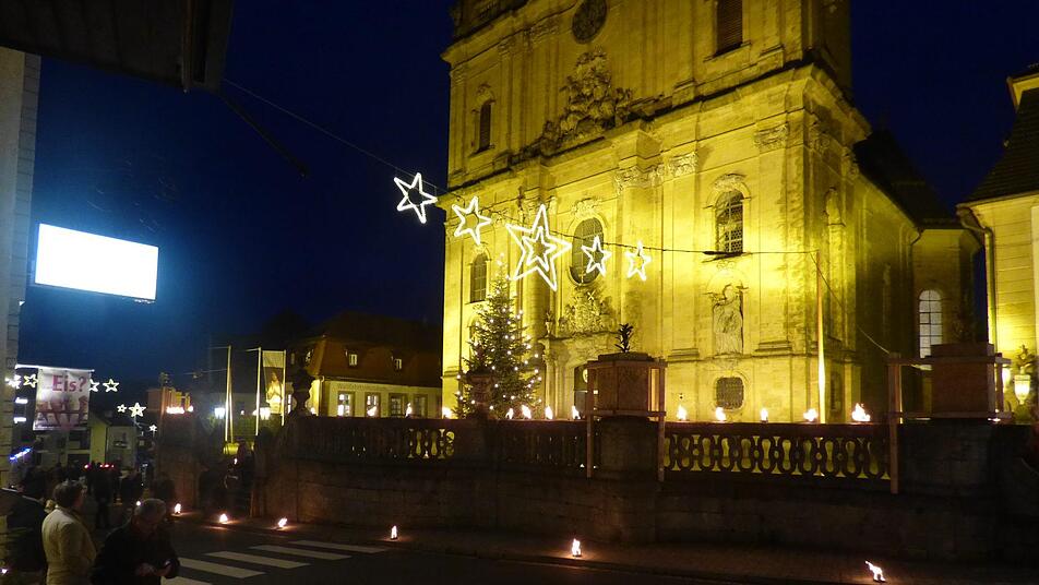 Für den neuen Gößweinsteiner Pfarrer, den Franziskanerpater Ludwig Mazur, war es eine Premiere. Erstmals trug er während des Gößweinsteiner Lichterfests am Abend des zweiten Weihnachtsfeiertages das Allerheiligste unter dem Baldachin durch den größten Dreifaltigkeits-Wallfahrtsort Deutschlands. Das Wetter passte, es war trocken und nicht windig. Wohl auch deshalb kamen viele Schaulustige aus nah und fern, um das Lichterspektakel mitzuerleben und bei Glühwein und Bratwurst vom Grill den Ausklang des diesjährigen Weihnachtsfestes zu feiern.