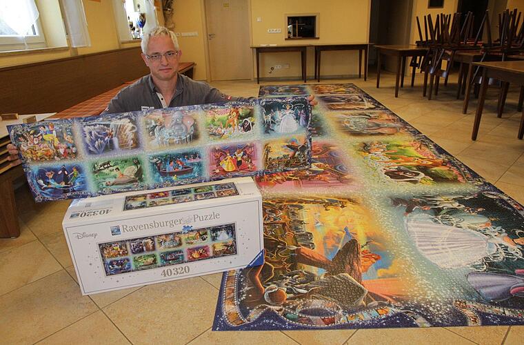 Peter Schubert hat schon mehrere Puzzles jenseits der 10.000er-Marke geknackt. Doch dieses hatte es nicht nur wegen der großen Anzahl der Puzzle-Teile in sich. "Manche Sequenzen waren höchst anspruchsvoll", erklärt der 49-jährige. Bis zu 14 Stunden an den Wochenenden und vier bis fünf Stunden während der Woche verbrachte er mit seinem Hobby. Nun ist es geschafft!
