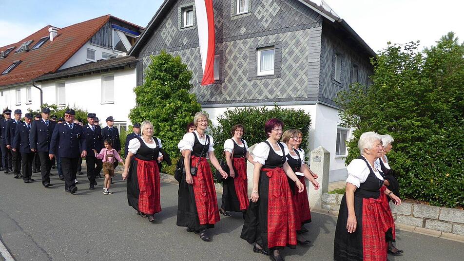 Doch die Glocken aus Bronze, Meisterwerke der Glockengießerei Perner aus Passau, haben auch Namen: So trägt die kleine der drei Glocken, den Namen des Heiligen Florian, die mittlere den der Heiligen Caecilia und die größte ist der Kirchenpatronin, der Heiligen Maria gewidmet. Wunderschön gestimmt sind sie auf die Töne "ges", "es" und "des". Begonnen hatte der Weihetag mit einem Festzug mit der Geistlichkeit, politischen Vertretern, Ortsvereinen und Vereinen der Großgemeinde Obertrubach mit ihren Fahnenabordnungen sowie zahlreichen Gläubigen vom Schmetterling-Betriebsgelände bis zur Kirche, mit Blasmusik begleitet von der Jugendblaskapelle St. Laurentius unter Dirigent Johannes Raum.