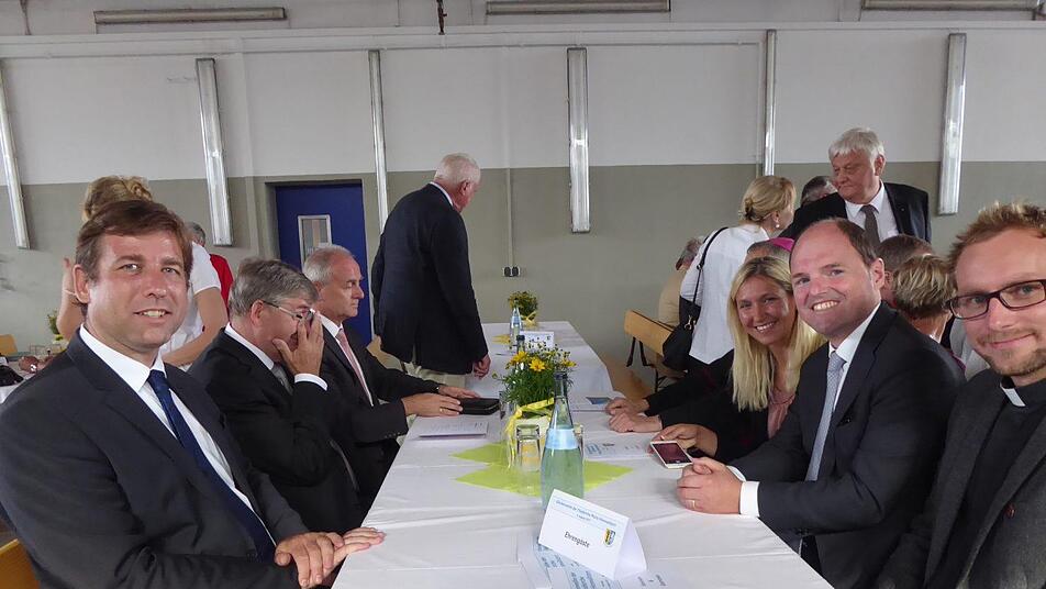 Und es passte tatsächlich. Es war ein Fest bei schönstem Wetter, ein Fest für einige hundert Gläubige und Festbesucher. Von den Organisatoren, den vielen Helfern und dem spürbaren Zusammenhalt der Geschwander war dem Weihetag ein herzlicher Charakter verliehen worden. Festlicher und feierlicher hätte die Glockenweihe in Geschwand nicht sein können. Abschließend wurden die Glocken bei einem geselligen Beisammensein und Begegnung mit Erzbischof Ludwig in der Schmetterlings-Halle gebührend gefeiert und auch begossen. Dazu spielten die Laurentius-Bläser auf.