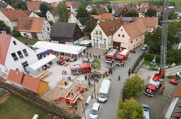 Das Dorf weihte sein neues Ortszentrum mit dem modernen Feuerwehrhaus ein. Die enorme Eigenleistung der Bewohner sparte viel Geld und fand große Anerkennung.