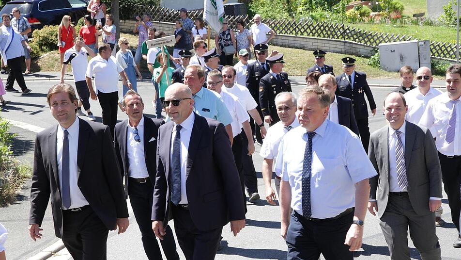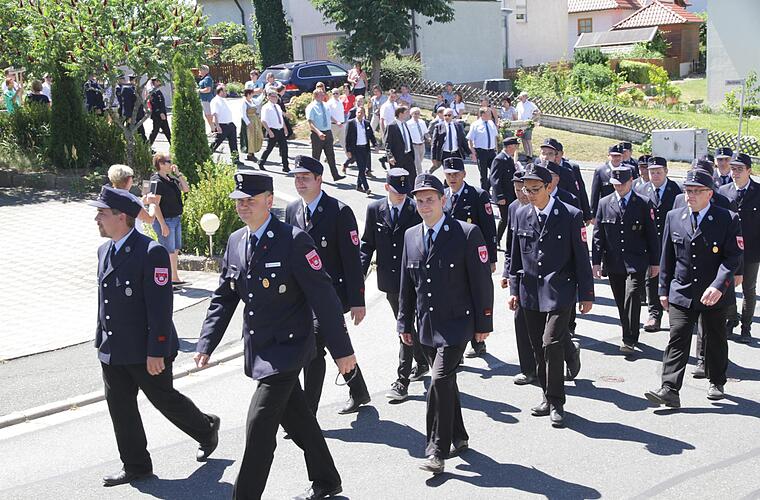 Über 40 Vereine, Verbände und Organisationen beteiligten sich daran. Bei strahlendem Sonnenschein marschierten sie unter den Klängen von den vier Musikkapellen - dem Musik- und Gesangverein Unterstürmig, der Neuseser Feuerwehrkapelle, dem Musikverein Eggolsheim und dem Musik- und Trachtenvereins Igensdorf - im Gleichschritt.