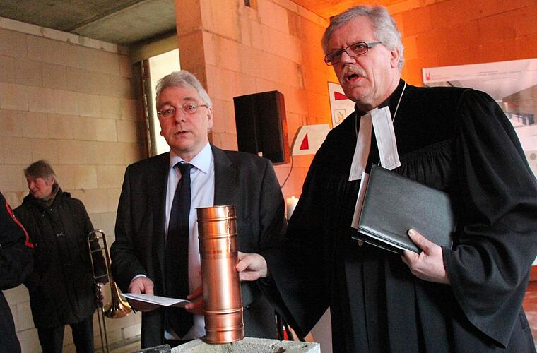"Der Herr ist Sonne und Schild" - dieser Psalm auf dem Grundstein werde auch Losungswort des Hauses, versicherte Schönauer, der diese Botschaft als Heilmittel gegen übertriebene Besorgtheit, gegen Lamentieren und Miesmacherei verstanden wissen wollte.